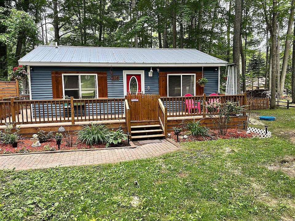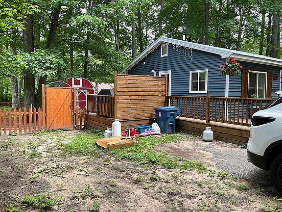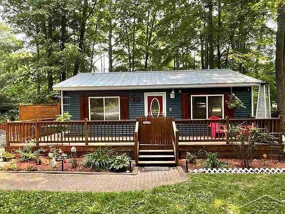 Beautiful cottage with new metal roof in between and just minutes away from Higgins Lake & Houghton Lake. All new flooring, trim, paint, furnace & central air, door, water filtration system, bathroom updated too. Fenced yard, wrap around deck. Shed with electric. Right across from Markey Township Parks. Must see! Immediate possession.