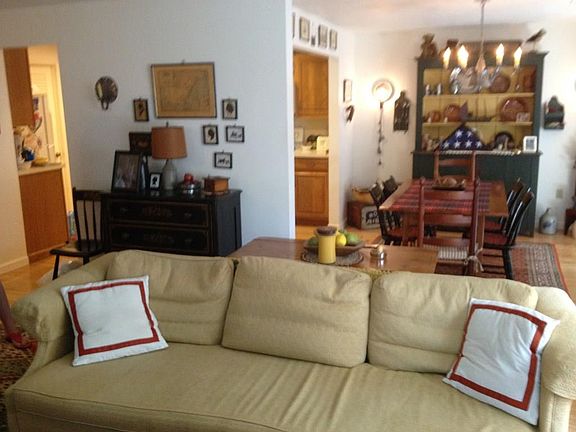 Ridgefield's Concord-2 ranch style end unit. Spacious L-shaped living room/dining room area & triple box window. Additional family room with cathedral ceiling & skylights with wood-burning fireplace. Private patio. Wide galley style kitchen, fully applianced. Separate utility closet with convenient washer & dryer. King sized master bedroom has it's own bathroom with shower & walk-in closet! Some updates needed, but priced right! Condo fee INCLUDES Comcast Basic expanded cable TV, Internet & FULL (interior & exterior) insurance! Pets require abutter approval. Seller has listed one named exclusion for first 7 days.