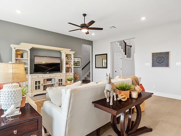 The Hudson | 4 Beds | 3.5 Baths | Game Room | Flex Room | 3-Car Garage | Covered Deck + Outdoor Living | 2-Story | 3,099 Sq Ft | Ready November Welcome to The Hudson, a thoughtfully designed 2-story home offering 3,099 sq ft of functional elegance, set on a spacious homesite with both a covered back patio and an upstairs covered deck-perfect for entertaining or unwinding outdoors. With 4 bedrooms, 3.5 bathrooms, a game room, flex room, and a 3-car garage, this home is designed for versatility and comfort. The entrance foyer leads you through a hallway into a bright and open family room with large windows showcasing views of the backyard. The chef-inspired kitchen features quartz countertops, built-in appliances, abundant cabinetry with soft-close doors and drawers, a walk-in pantry, and a center island overlooking the family room and adjacent dining area. The primary suite, located on the main floor and spanning the length of the home, is a luxurious retreat with tray ceilings and French doors opening to the spa-like ensuite bath. Enjoy dual oversized vanities, a soaking tub, a separate walk-in shower, a linen closet, and a massive walk-in closet with direct access to the utility room for ultimate convenience. Upstairs, the home opens to a spacious game room, three secondary bedrooms each with walk-in closets, two full bathrooms, and a flex room-perfect for a playroom, fitness space, or second office. Additional Highlights: Luxury vinyl plank, tile, and carpet flooring th