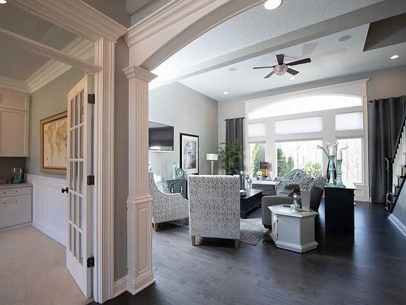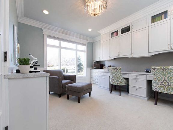 - Breakfast Bar, Kitchen Island, Great Room, Stone Counters, Eat-in Kitchen, Crown Molding, Bookcases, Entrance Foyer, Tray Ceiling(s), Open Floorplan, Bar, Tub/Shower Combination, 1st Bdrm En Suite, Main Level Bedroom Suite, Tub and Separate Shower, Split Br Floor Plan, Twin Sink Vanity, Utility Sink, Pantry-Walk In, Custom Cabinetry, Built-in Desk, Jack & Jill Bath