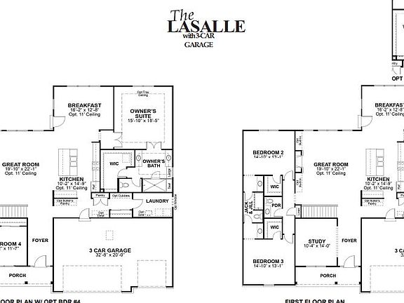 The LaSalle is on of our most popular ranch plans. with over 2800 feet of space this is perfect for a family of many sizes. Split bedroom design with the Owner's Suite on one side of the home and two bedrooms on the other. An open floor plan between the Great Room, Breakfast Room and Kitchen is perfect for a great flow in the home. The Kitchen is spacious with an expanded island, white cabinets and quartz countertops. Extensive hardwood flooring throughout and open stairs to the lower level. 11' ceilings in the Great Room. Covered patio.