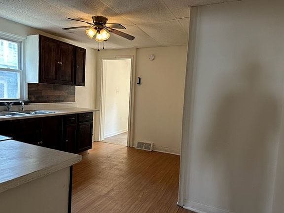 South side city semi-attached home in good condition. Two bedrooms with shared space between rooms that can be an additional space to sleep or home office setup so feels like 3 bedrooms. Full bathroom upstairs. Half bath on main floor. Remodeled kitchen. New windows. Nice size yard. Great neighborhood. No garage, but ample street parking.