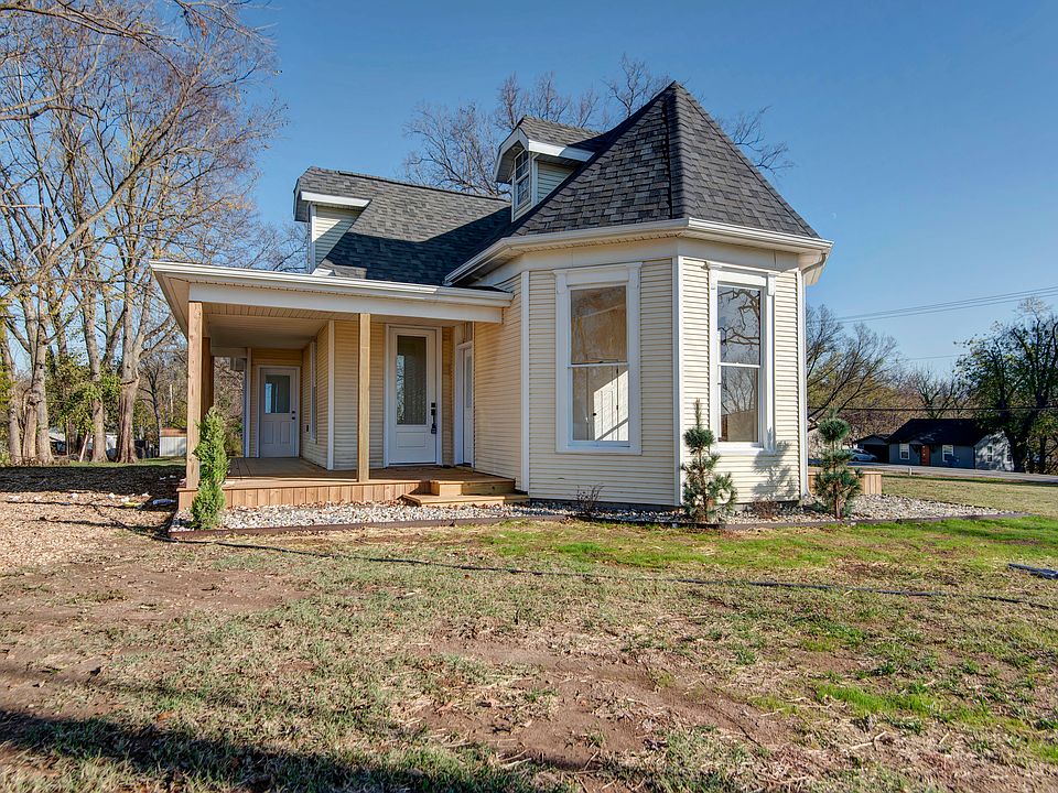A perfect mixture of new and old. This home has been floor-to-ceiling, remodeled down to the studs. Everything is new yet gives the charm of the original home. If you are familiar with Ozark, this home sat at the corner of Jackson & 3rd St. for more than a century before it was moved to its current setting. Before you ever walk inside you will feel welcomed by the large covered deck with entrances to the living room and master. Once inside, you'll immediately notice the extra tall ceiling heights, abundance of windows giving you all that natural light, and exterior doors adorned with transom windows and the floor plan that flows perfectly from the living room to the dining and kitchen. The wood french doors and trim were preserved in the front room that would make a great bedroom or office. The kitchen features extra tall cabinets, quartz counters, stainless appliances, tile backsplash and a super cool pull-out food prep station. On the back of the home you will find a newly added full bath, mud room bench, and laundry room. The master suite features a large walk-in closet, dual vanities, lots of storage, and natural light. The 3rd bedroom on the main level even has its own exit! Head upstairs and you will find a ton of flex space. This room counts as the 4th bedroom and even has a walk-in closet. Outside you will notice the nice deep lot and mature trees. Trash is included in your water bill. Utilities are paid by tenant.