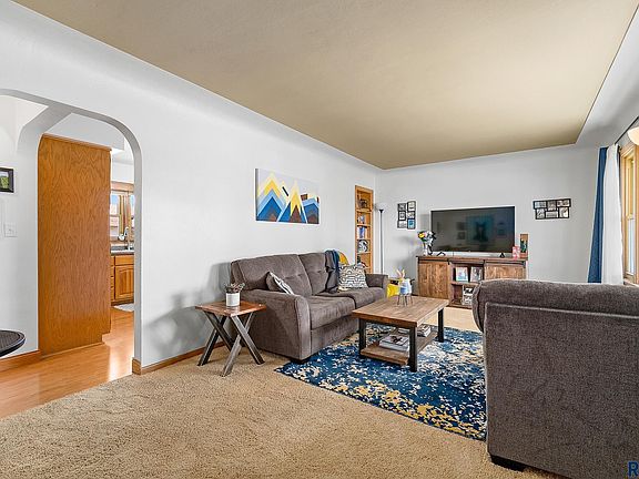 Welcome to this charming ranch walk-out home in east Sioux Falls. With 3 bedrooms & 2 baths, this home offers comfortable living spaces! Updates include a water heater & radon mitigation system in 2022, high-efficiency furnace & A/C in 2016 and newer vinyl windows. Step into the inviting living room, adorned with a coved ceiling and large picture window. The kitchen has been updated with oak cabinets, fresh paint & a cozy eat-in area. Down the hall are 2 bedrooms and a full bath. The lower level offers additional living space including a generously sized 3rd bedroom and second bath featuring a tiled walk-in shower. The family room provides ample room for furniture, exercise equipment, and even a game area if desired. Easy access from the semi-finished laundry room to the expansive fenced backyard which includes a storage shed and underground sprinkler system. The convenience continues with a single-car attached garage that provides enough depth to accommodate larger vehicles.