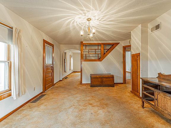 WOW! This small town story and a half three bedroom aluminum sided home has been priced to sell at $50,000! The main floor welcomes you (and yours) home with its enclosed front facing 7X16 porch, comfortable living room, gracious formal dining room, vintage equipped kitchen, large rear laundry/mudroom area, roomy bedroom with hardwood flooring as well as built-ins, and a full hall bath. Upstairs, you will two additional nice sized bedrooms. Property also features an architectural roof, newer water heater, updated furnace and central air conditioning unit, and a HUGE older 40X32 detached garage/machine shed with loads of space for all of your toys and hobbies! City water/private septic system on premises. All appliances (NOT warranted) to remain upon settlement for new owner(s) including washer and dryer. Owned and loved by the same family for decades, this adorable small town Logan County residential dwelling awaits new ownership! Conventional or cash only, please. Property sold as presented with no repairs/concessions at expense of seller.