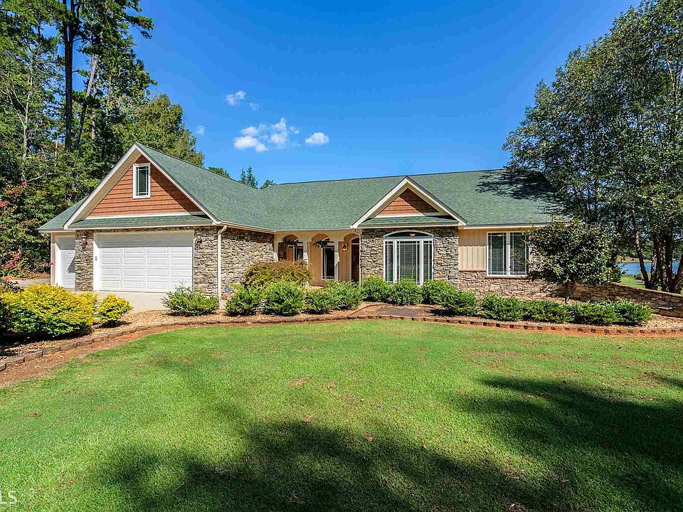 If you're looking for something special you have found it! This is a fee simple LEVEL PENINSULA lot on Lake Sinclair located on nice water with spectacular unobstructed views! This home offers a "dream" floorpan with tons of natural light and is absolutely turn key. There's a master suite AND 3 additional bedrooms on the main floor. Upstairs is an extra bedroom and a "bonus" for visitors or family. There's a 3 stall garage plenty for cars, toys or workshop. You will not be disappointed in the "entertainment" space either! The living room walks out to a covered cathedral patio and apx 1000 sq ft open space with grilling area, outdoor fire pit, hot tub, and Gunite swimming pool. The boathouse has 2 slips, large deck side extension, two powered boat lifts, two powered jet ski lifts, and a fish cleaning station. This one will check your boxes!