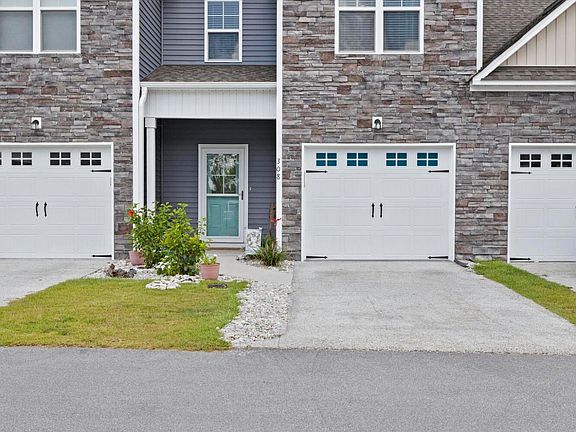 Buyer Incentive! Preferred lender offering up to $1400, toward closing costs!! Welcome to the Townhouse community of Stonebay Townhomes, conveniently located just minutes from Stones Bay, local shops and a short drive to the beach. This stunning 3 bedroom, 2.5 bath home, welcomes you with beautiful landscape and comes packed full of custom upgrades and finishes. This better than new townhouse, built in 2020, features LVP throughout main living, staircase and upstairs hall and bedrooms. Upgraded kitchen features; granite countertops, beautiful tile backsplash, stainless steel appliances, under cabinet lighting, soft close cabinets and drawers with customized storage and pullouts in every cabinet, a cook's dream! Upstairs you will find two large bedrooms, full bath, laundry and master suite. Master bedroom measures 12X20, has a large walk-in closet, ensuite with dual vanity and shower/tub combo, and an added additional linen closet. Single car garage includes additional built in storage and ceiling racks. Covered patios are located in the front and back. HVAC has been recently serviced and seller has added whole house surge protector on the electric meter. Seller is leaving new Fridge!! Schedule your showing today!