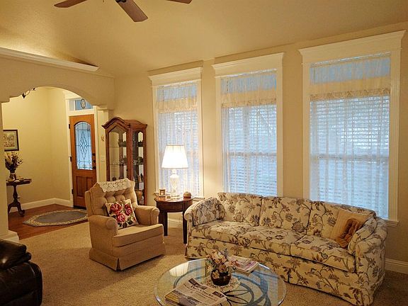 Clean, attractive and move-in ready 2006 Chapman Construction home in attractive tree lined River Road Subdivision. Large bright and open kitchen with dining area combo, breakfast bar, granite counters, large windows and door out to covered patio. Additional features include vaulted ceilings, arch ways, lighted plant shelves, crown molding, indirect lighting, warm wood floors, and shuttered blinds. Spacious master suite with double sinks, walk-in closet and door to covered patio. Nice utility room with lots of cabinets and large sink. Covered patio looks out over nicely landscaped fenced yard with automatic inground drip and sprinkler systems. 2 car attached finished garage.