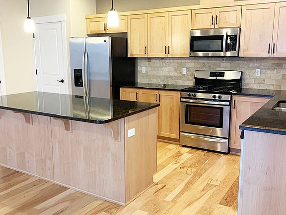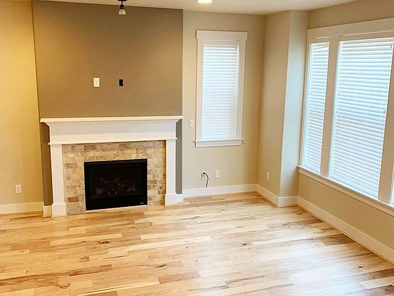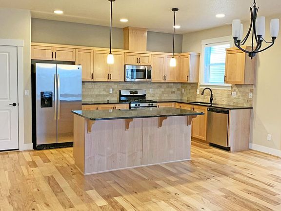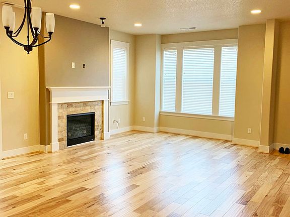 Stunning two level house with all the bells and whistles! Main level has hand scraped hickory hard wood flooring throughout. Light cabinetry in kitchen with onyx granite slab countertops. Stainless appliances including microwave, range, dishwasher, refrigerator. Upgrades throughout! Open living room with gas fireplace and custom white wood blinds throughout. Eating nook to fenced side patio - great for a small bbq. Upper level features four bedrooms, two full baths and laundry room with full sized washer and dryer included! Double garage. A pet would be negotiable with owner approval and refundable increase to deposit. Call for more details