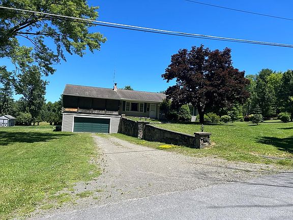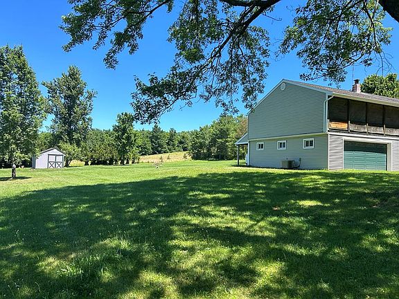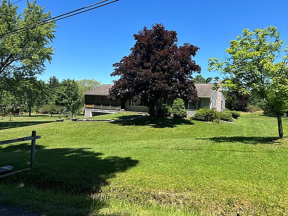 Very nice 3 bedroom ranch home on the market for the first time! This well cared for home offers one floor living with nice size bedrooms, front living room all with gleaming hardwood floors, main floor full bath, nice eat in kitchen with patio doors leading to the nice deck overlooking the big back yard, the lower level offers some finished space with a very nice laundry room with lots of counter & storage space, attached 2 car garage with a huge covered patio room above it! Not to mention the new furnace / central air system, garage door...All sitting on 1.5 acres of well landscaped property with a large 28' x 11' shed. This home is priced to sell and offers a lot of value even with some needed updates... all located in a rural setting, yet close to many amenities. A must see!