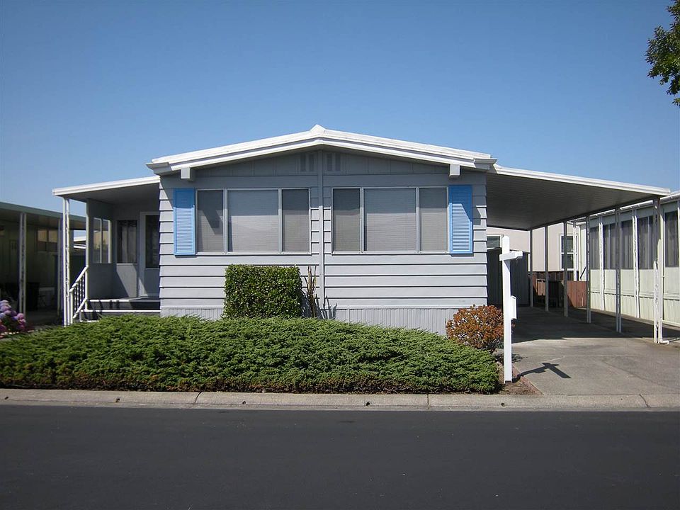 Mobile home in Mission Bay Mobile Home Park. Features include light gray panelling, air conditioning, updated furnace, earthquake bracing, updated master shower, and large enclosed porch. Back yard completely fenced in with patio and astro turf areas.