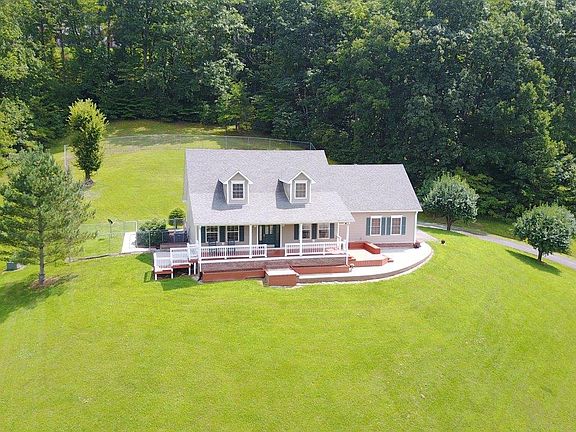 Located just outside London city limits in Bush/North school districts you'll find this lovingly maintained 1.5 story home with full-finished basement on 1.57 acre lot, unrestricted. The surrounding views from the 8X41 covered front porch are picturesque & suitable for relaxation. The 1st level, all hardwood & tile & crown molding, offers a 10X21 formal entry w vaulted clg, fully equipped eat in kitchen with island bar, Corian countertops & pantry, mudroom/utility & half bath, open living room w vaulted clg, 2 story fireplace opening on to rear patio, 1st floor 14X16 master w ensuite w large step-in shower & 2nd guest bdr on main level. The upper level overlooks living area below & has a large den, 3rd bdr & bonus room/4th bdr. There's more! Lower level has family room, 5th bdr, office w built-ins, rec area & large half bath. The tree-lined drive way leads to a completely secured rear yard w chain link fencing, perfect for pets or the safety of small children or privacy!