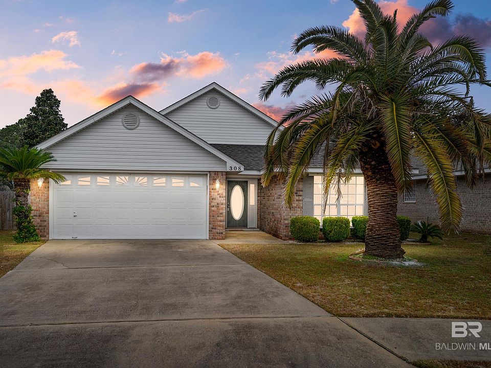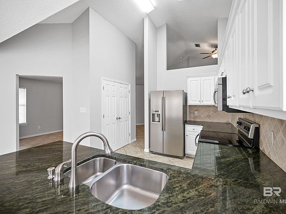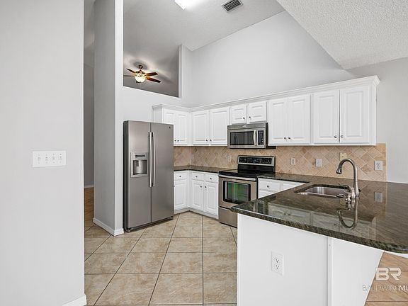 Looking for a move-in ready home that's conveniently located in Gulf Shores? This home has recently been painted and features a new roof, (2021) open floor plan with vaulted ceilings, stainless appliances, granite counter tops, and tile throughout. The kitchen also includes a sit-down bar and sunny breakfast room make cooking a breeze. The separate dining room has a custom Murphy bed with easy pull-down to accommodate extra sleeping quarters. The split bedroom plan has a primary bathroom with custom sinks, garden tub, separate shower, and block glass accents. Big closets in all bedrooms provide ample storage space. The spacious living room and family room include a cozy wood-burning fireplace. The fenced backyard has privacy and views to the Craft Farms Golf Course, and you can enjoy a spacious patio for grilling and outdoor entertaining. Located in Gulf Shores City School District. Assumable FHA Mortgage with 3.5% interest rate.