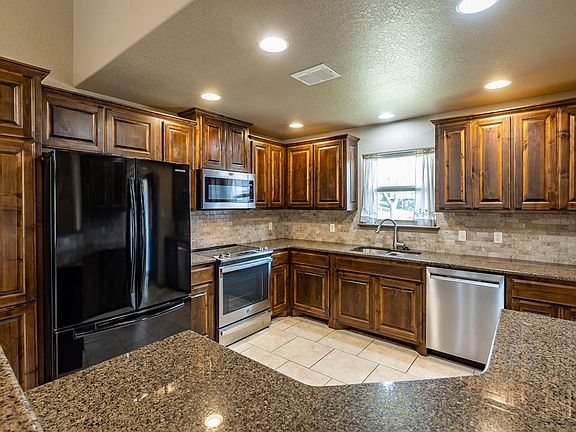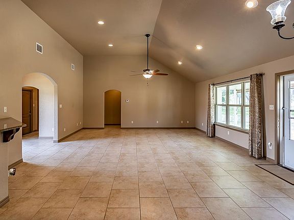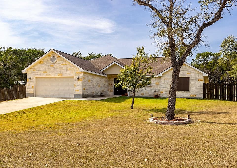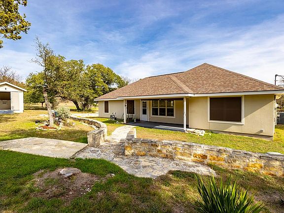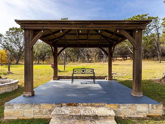 Country living with low taxes. Lovely native stone home offers an open floor plan with high ceiling, granite in the kitchen and beautiful cabinetry. Master bedroom suite features double vanities, walk-in shower plus walk-in closet. You will find tile flooring throughout the home for easy cleaning and care. The back yard is fenced with large covered back porch, rock walls with French drain plus pergola for sitting by the fire pit. Workshop is insulated and has a window AC.