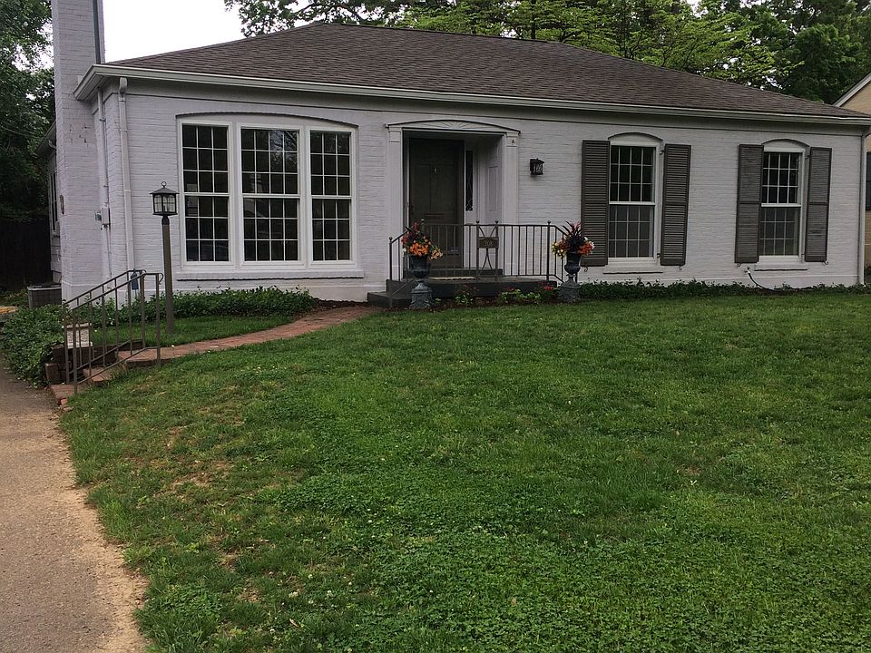 Terrific one-floor plan with totally fenced-in backyard. Large basement, partially finished. Outstanding location near St. Matthews and downtown, and wonderful for walkers. Professionally remodeled full bathroom and granite vanity in half bath. Random width, pegged hardwood floors. Lots of windows makes this a sunny, bright and happy place. Butcherblock countertops and new stainless steel appliances in kitchen. Nice den with windows all around facing private back yard.