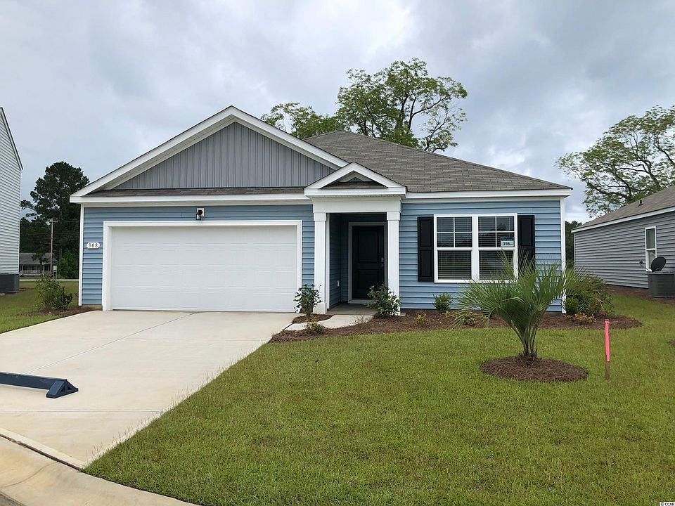 The popular Aria plan is now available in Pine Forest and features a bright and airy open floor plan that is great for entertaining! The kitchen boasts white painted cabinetry, a large working island with breakfast bar, pantry with ample storage, and all stainless Whirlpool appliances including a refrigerator. The split bedroom floorplan creates a private primary bedroom suite with a walk-in closet and spacious bathroom offering a double vanity and 5 ft. shower. Blinds will be included throughout the house on all standard sized windows and the living room and all bedrooms will be pre-wired for cable and ceiling fans. Two-car garage with garage door opener, our QuickTie framing system, and a rear covered porch. It gets better- this is America's Smart Home! Control the thermostat, front door light and lock, and video doorbell from your smartphone or with voice commands to Alexa. Pine Forest offers spacious homesites with a country feel, but is just a short drive away from the historic city of Conway, quaint town of Aynor, and all of the Grand Strand. *Photos are of a similar Aria home. (Home and community information, including pricing, included features, terms, availability and amenities, are subject to change prior to sale at any time without notice or obligation. Square footages are approximate. Pictures, photographs, colors, features, and sizes are for illustration purposes only and will vary from the homes as built. Equal housing opportunity builder.)