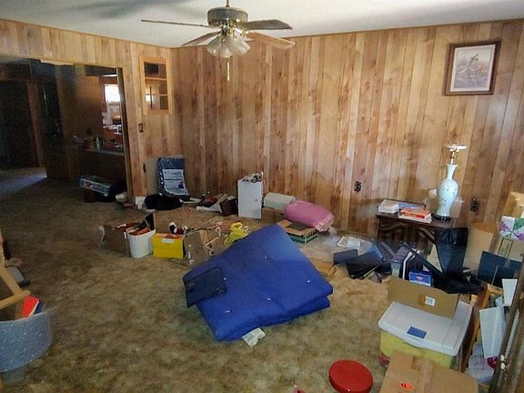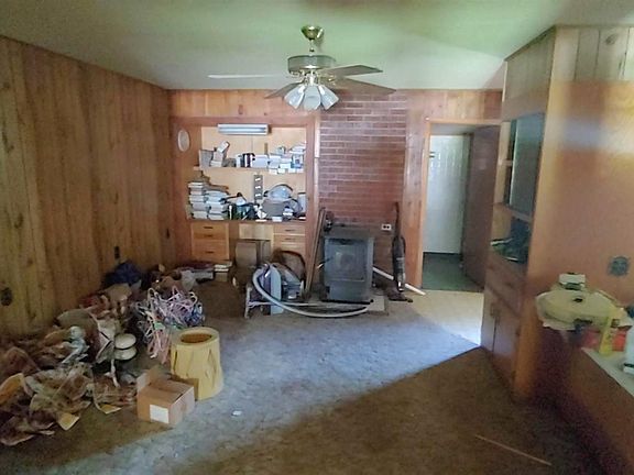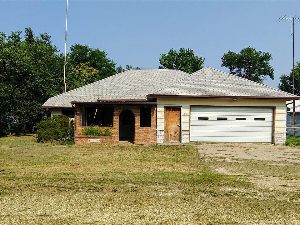 Property was renovated in 1987 with the garage and master bedroom addition, Quality steel siding with brick veneer exterior, Composition three tab roof in fair condition, Covered patio in front, Large Kitchen with center island, Built in desk, Large master bedroom with tub/shower, Laundry Room, Large living room and dining room, All Appliances Included, Window Air Unit, Electric pellet stove condition unknown, Roof top heating and air package unit not in working condition, Oversized insulated two car attached garage, Hot Water Tank condition unknown, Rural Water service, Prairie Land Electric Service, Septic System condition unknown, Crawl Space access, Plumbing condition unknown. Property last occupied in 2016, Please inspect. All items left in or on property pass to the Buyer. Seller is not responsible for removing items prior to closing.