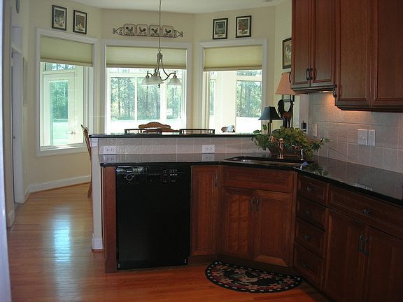 This 2500 ft custom built ranch sits on a quiet cul-de-sac in a golf course community. It has 3 large bedrooms, office/den, formal dining room, 2 baths, oversized 2 car garage. In addition, an extended 600 sq.ft. glass and screened enclosed lanai spans the rear of the house overlooking the golf course and waterway.Open floor plan, with 10' to 15' ceilings and 8' ft. interior doors. Kitchen has granite counter tops with custom designed 42" cherry cabinets, double oven, stainless steel appliances and a walk in pantry. Hardwood flooring throughout main living area. The family room opens to the lanai, which enhances its living space, also has a custm built 16ft wall unit w/book shelves, closed cabinets, gas fireplace, TV shelf and stereo component storage. The utility room has front loading Samsung washer/dryer, custom cabinets, built in storage bench, and counter with large deep sink. The oversize two car garage has 46" custom cabinets throughout. Master bedroom has french doors to the lanai, and his and hers walk in closets. A large tiled master bathroom has 8 ft. dual vanity, separate shower, water closet and 7 ft. soaker tub. Master bedroom/bath as well as the 2 bedrooms/bath on the opposite side of the house can be closed off for privacy. Ceiling fans are in all rooms, 3 zone heating/cooling allow for efficient comfort.This home has been maintained at a very high level and is move in ready. Warranty included!Club membership includes, 4 star 18 hole golf course, community pool, tennis courts, and private beach access/parking, and is transferable at buyers expence of $1500.00. A $15,000.00 value.