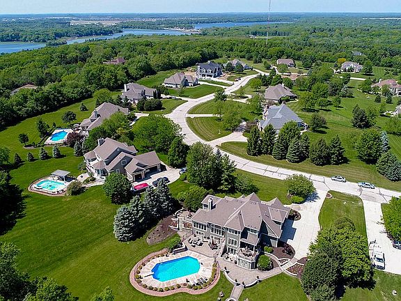 Welcome home to your luxury resort! An entertainer's dream both inside and out. Whether a party at the large in ground swimming pool, or BBQ on the deck or one of 3 other beautiful patio areas. This 5000 sq ft, Jeff Horwath built home is truly beautiful inside and out. Huge floor to ceiling stone fireplace in Great Room. Master BR with gas fireplace, sitting area, & en-suite with large Jacuzzi tub and shower. Sunroom overlooking pool with 2-sided fireplace. Remodeled office with built in bookshelves. Rec room remodeled in 2015 with Walk Out to pool and full bath. Newer deck with huge storage shed built underneath. Newer furnace and water heater. Resort style yard with 4000 sq. ft. of pavers and brick walls. Walking distance to the Ice Age Nature Trails, 2 miles from downtown Delafield!