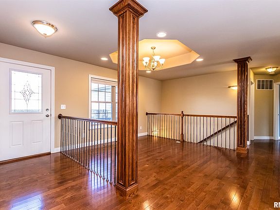 Come take a look at this stunning move in ready 4 bedroom ranch, nestled on a spacious wooded lot in the popular Stonewood Subdivision and just minutes from the Levee District! This home offers an open concept layout and features vaulted vaulted ceilings in the living room, gas fireplace and numerous windows for natural light. Master suite boasts a walk in closet and full master bath. Main floor laundry just off the garage. Finished walk-out basement offers a stunning wet bar w/ tile floor. Custom built ins in the family room, gym/workout room, 4th bedroom and a fully custom bath w/ jetted spa tub and full walk in shower. This is truly one to see. Come take a look today!