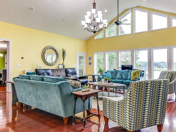 Pictures coming! Custom lake home with 4BR/3.5 bath and bunkroom. Awesome views from the great room and dining area facing the lake. Master suite on main level. Screened porch off kitchen to dine and relax with the exquisite views and sunsets. Dining area has gas fireplace for ambiance on cool days. Outdoor kitchen with Green Egg, fireplace and gas grill makes outdoor living easy! Terrace level has 3 bedrooms and a bunk room as well as 2 full baths (one is handicap accessible). Easy walk to the water. Double deck aluminum floating dock with lift. Detached 20 x 30 garage with 8 foot door. Located on paved road.