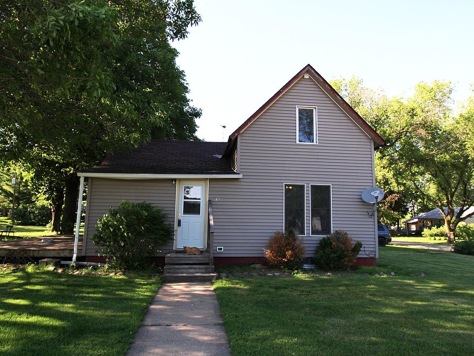 Two bedroom, 1.75 bath fixer upper in Terril on a big corner lot (140 x50). Main floor has laundry & 1 bedroom; 2nd Master Bedroom with privatefull bath upstairs. Unfinished basement. Newer furnace & water heater.Large deck that spans the length of the house. Detached garage. Sellerhas always used it as a rental. Being sold AS IS. Ave gas $34, electric$79.39, H20/sewer/trash $55.