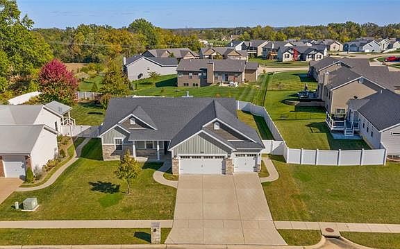 6 years new trendy and modern updated 1800+ square foot home with 3 car garage. The updated kitchen features granite countertops, SS appliances, custom white cabinetry with molding, and ceramic tile flooring. The living room, entry and hallway have wide plank hardwood flooring, 5" trim, farmhouse style doors and windows. The master suite has a coffered ceiling, recessed lighting and large windows. The trendy Master Bath has a soaker tub, full shower, adult height double vanity with granite countertops and extra drawers and separate water closet. There is a large walk-in closet located off the Master Bath. There are 2 more generously sized bedrooms and a full bath that round out the main level. This home sits on a dead end street which neighbors a large and private farm. This home currently feeds into Wabash Elementary, Wentzville Middle, and the new High School - North Point. Please inquire with WSD for further clarification or confirmation regarding boundary lines.