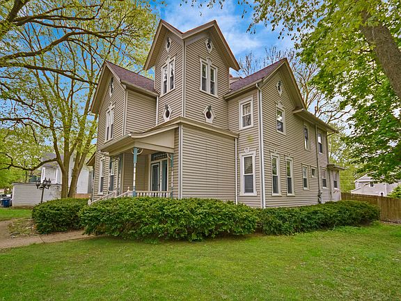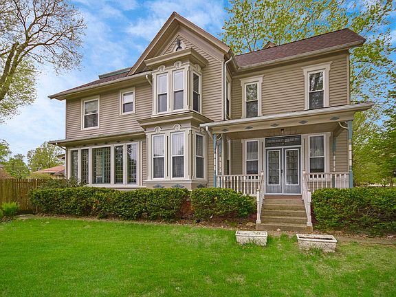 This gorgeous updated victorian home is not to be missed! The woodworking throughout is absolutely stunning. Hardwood flooring, built-in's, beautiful dining room featuring massive windows overlooking the back and side yard as well as exposed beams, adding to the character. Impressive entry with main curved staircase taking you to the 2nd level. This home features a 3rd floor widows weep with stained glass window features. Large kitchen with massive, solid wood built-ins, and access to the butlers back staircase, providing two accesses to the 2nd floor living space. Many of the hardwood floors have been refinished. Additional updates include a new panel and some electrical upgrades/updates, many updated windows/storm windows and more. Backyard is fenced in and features a stunning in-ground pool with new liner in 2017, as well as access to the carriage house (garage). 2-story detached carriage house provides for an abundance of storage. Full unfinished basement and attic. Dual Geo-Thermal systems perfectly and energy efficiently maintain the inside climate. New roof in 2019! Truly a home that has character abound. This home has been featured in past town Christmas tours and is now ready for a new owner to enjoy and appreciate!