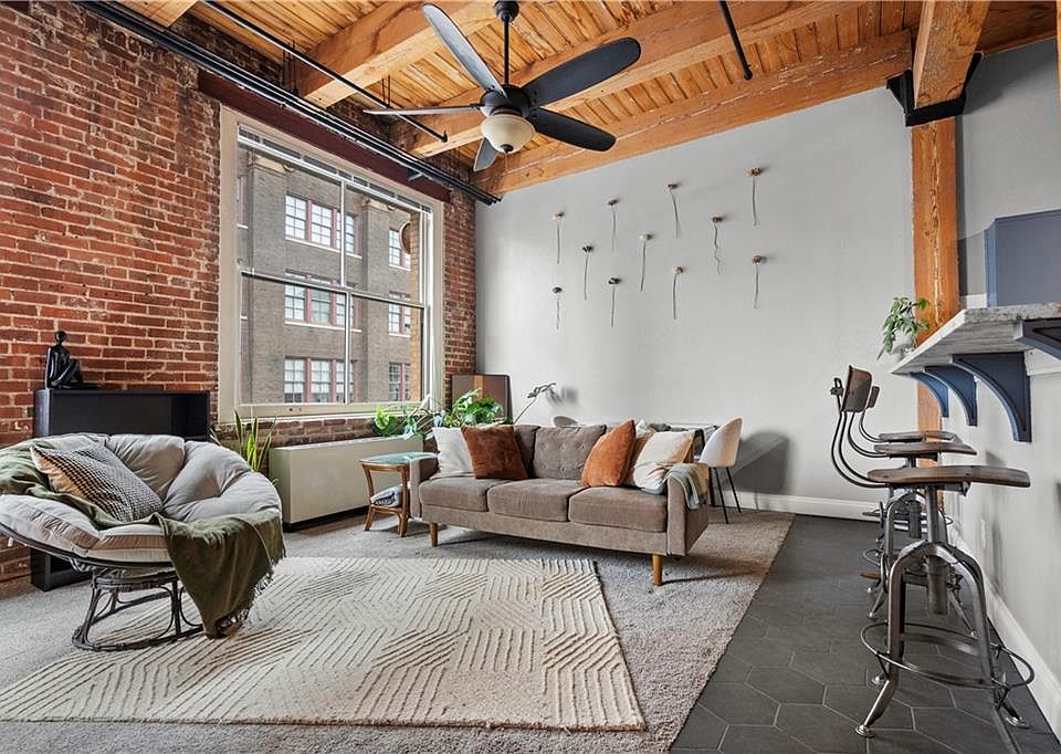 Stunning skyline viewsOpen-concept layoutStylish wood beamsLarge walk-in closetExposed brickNatural lightFloor-level laundry
