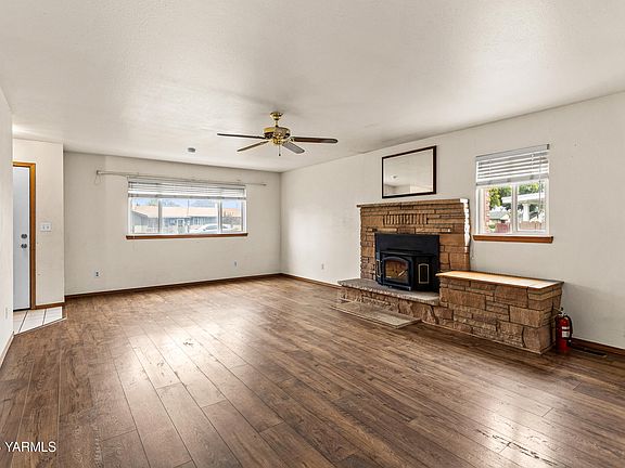 Spacious 4-bedroom, 3-bath home in a quiet Union Gap neighborhood, just minutes from Costco, Valley Mall, and other amenities. Thoughtfully laid out with the primary bedroom on the main level next to an updated full bath, plus three additional bedrooms and a full bath upstairs. A half bath is conveniently located off the kitchen, as is the laundry room.The large living room features updated hard flooring and a cozy fireplace. Enjoy a roomy kitchen with wood cabinets, ample storage, a breakfast nook, and a separate dining area. There is also a partially finished basement with a flex room with woodstove, additional storage room, and a door with yard access. Step outside to a peaceful backyard retreat with mature trees, a large covered patio area with outdoor kitchen, chicken shack, and garden space. Detached garage includes a workbench, and the home also has a newer roof. This home is waiting for your personal touch, a fantastic opportunity to make it your own and add value. Renovation loan option is available for improvements, Don't wait to check it out!
