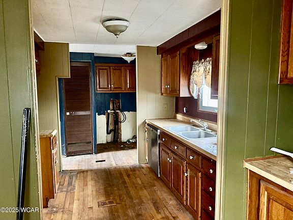 Fixer upper in Spencerville. This ranch style home hs 2 bedrooms and 2 full bathrooms. The home had a water leak in the crawlspace so be very careful walking in the far bedroom at the end of the hall and the bathroom off of it the floors are soft. Being sold ''AS IS'' Detached 2 car garage