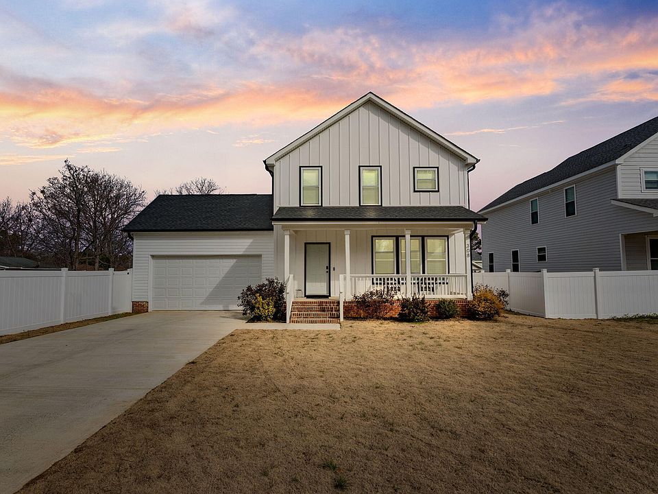 Step into this stunning home built in 2022, where modern design meets thoughtful functionality. Boasting an open floor plan, this home features 3 spacious bedrooms, 2.5 baths, and an inviting atmosphere perfect for entertaining or relaxing. The heart of the home is the beautifully designed kitchen, complete with granite countertops, stainless steel appliances, and a large island with seating - the ideal spot for casual meals or gathering with friends. Custom lighting throughout adds a touch of elegance to every space. A dedicated laundry room with a convenient sink simplifies your daily tasks, while the fenced-in backyard provides privacy and space for outdoor activities. Relax on the charming front porch or take advantage of the ample storage and convenience offered by the attached 2-car garage. From its modern finishes to its practical layout, this home is ready to welcome you. Don't miss the chance to make it yours!
