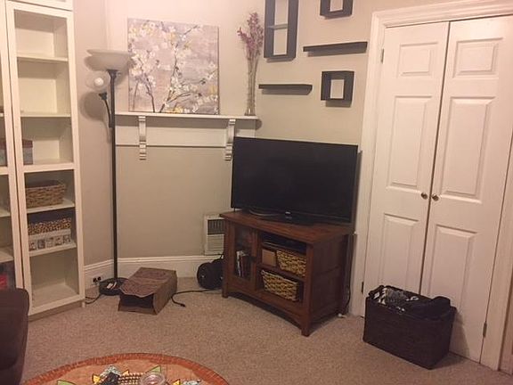 First floor one bedroom apartment in walking distance to all restaurants/bars/shopping in the borough. Large kitchen with island/bar and dishwasher. 1 full bath w/marble floor. Bedroom has refinished hardwood floors and ceiling fan. W/W carpet in living room w/ceiling fan. Full finished basement w/ exposed brick, laundry room, washer & dryer, and plenty of storage space. Off street parking (large driveway), large patio, and front porch. Aparment has central air conditioning and heat. Landlord pays gas heat, water, sewer, trash. Owner pays for gas heat, water, sewer, and trash