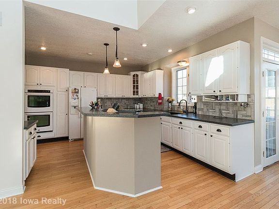 Enjoy country life on this 2.5 acre retreat w/the conveniences of in town living including paved road & city water/sewer. Home perfectly located 30 min to downtown DM, 25 min to Ankeny or Marshalltown. Built in 1999 this home sits on 2.54 acres & features an open floor plan, 4BR, 4BA, finished walkout LL. Main floor Mstr BR details 12' ceilings, gas fireplace, private bath with jet tub, & its own private deck. Renovated spacious kitchen offers a gas stove top, double wall oven, & hard surface counters. Handyman's dream w/oversized 2c detached insulated/heated garage measuring 26x32. In addition is a 30x40 detached workshop w/heated floors & wired for 220. This property features gorgeous landscaping w/an extensive back patio, beautiful view of a private stocked pond, grape vines, blackberries, fruit trees. Other key details incl fenced dog run, back storage shed, back deck wired for hot tub, natural gas line to grill, wet bar (bar stools incl), wired surround s