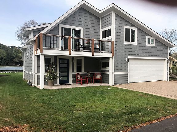 Gorgeous lakes views of Lake Mary and Lake Elizabeth from every room in this completely remodeled home located in beautiful Twin Lakes Park. Open concept kitchen with center island, quartz countertops and plenty of cabinets. The great room, with vaulted ceiling and gas fireplace, opens to brick patio, and 46 feet of flat frontage on Lake Mary with no neighbors. Main floor master suite, laundry and additional bathroom. Upstairs are 2 additional bedrooms (one with a walk-out balcony), full bath, bunk room and loft which is currently being used as an office. In addition to interior remodel, new yard, roof, windows, sky lights, siding, furnace and air conditioning were replaced. 2+ attached garage to store all your toys. Enjoy lake activities during the summer and skiing at Wilmot Mountain in the winter. Great opportunity for vacation rental income.