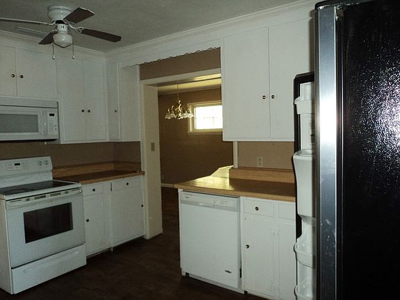 Plenty of room here! Neat and clean home features large den with fireplace insert and decorative beams on the ceiling, a living room and 4 bedrooms. Appliances included. There is a fenced area of the yard and a carport.