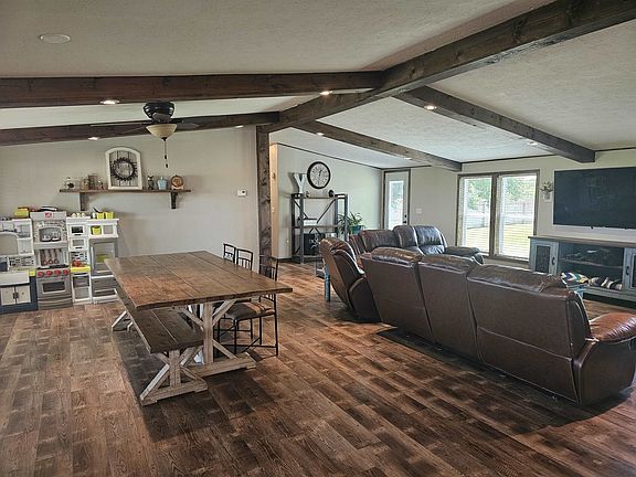This 4 bedroom 2 bathroom home has been completely remodeled and is move in ready! With 1782 sq ft of living space and an open floor plan, this home is perfect for family or entertaining. New siding, windows, doors, roof, and main water line were done in 2021. The carpet in the primary bedroom and the natural gas service line were updated in 2023, and the hot water heater was replaced in 2024. Sitting on 1.68 acres on the edge of town, there is a large fenced in backyard as well as 2 outbuildings. One building is 40x56 and the shop is 40x30 with a separate electric meter. This home also includes an underground storm shelter as well as a covered front porch, perfect for relaxing or enjoying a cup of coffee. Make this home yours today and call Sybil R Pyle 620-408-5349!
