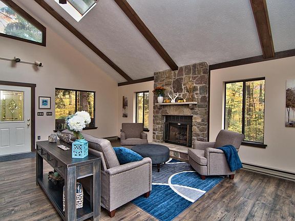 308 Wampum Way, Captures the Splendor of Fine Mountain Living and a Premium Timber Trails Setting. Embraced by Nature, this Most Preferred Custom Home Design is Beautifully Set on a Private Cul De Sac, Just Steps to Picturesque Tall Timber Lake. Highlighting a Great Room Surely Designed to Impress. Stylish Living Accented by Hardwood Laminate, Stone Gas Fireplace, and Window Wall Open to a Gorgeous Dream Kitchen. Granite, Choice Cabinetry, Stainless Appliances, Custom Lighting, All the Must Haves. Great Indoor & Outdoor Entertaining with Blended Dining and Family Room Leading to a 37 x 14 Deck with Wooded Views. 4 Bedrooms with 1st Floor Master Bedroom, 2 Baths, Loft and Central Air. Furnishings Included. A Fantastic Timber Trails Turn Key Home, to Make Your Own.