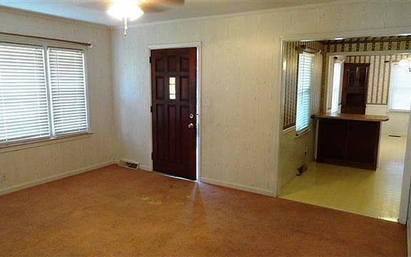 What an affordable package! This 3BR brick one-level home offers hardwood floors. Outbuildings for workshop or storage. There is a dining room with two corner cabinets as well as a breakfast area. Moveable island/counter area. Ample cabinets in kitchen. Ceiling fans. 2" blinds. Attic fan is disconnected. Pull-down attic entry. Trane unit. Gas heat. Side deck. Laundry hook-up in enclosed rear porch. Rural living yet close in. Possible second entrance to workshop area at rear of lot. 100% Rural Housing funds are available to qualified buyer. FAR BETTER THAN RENTING!!! Property and its improvements are being sold 'AS IS'. Buyer/Buyer Agent is responsible for verification of all information pertaining to this property as to its accuracy.