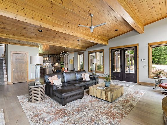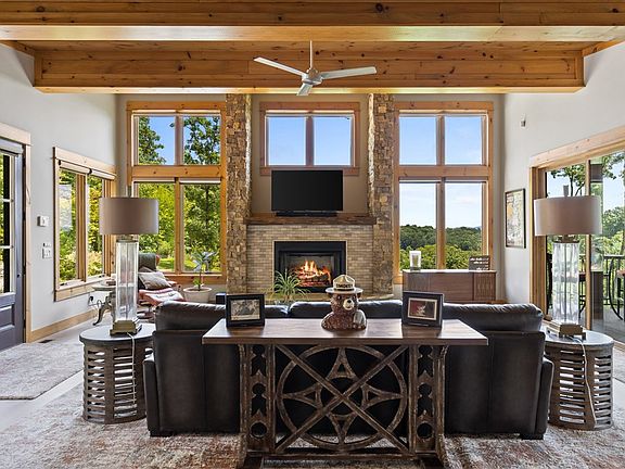Perfect scenario for modern mountain living! Nestled on 3.49 acres of beautifully accessible land (all paved roads with end of road privacy), this impeccably maintained 4/3 2 1/2 bath Mountain Modern residence combines design, luxury, and comfort. Crafted from stone, glass, and cedar with beautiful views and a tranquil, private setting-just 1 mile from downtown Blue Ridge. Key Features: Architectural Elegance: A striking combination of rock and glass, this property is designed to" bring the outside in" , offering breathtaking panoramic eastern mountain views. Hardi plank with bold rooflines creates a visually stunning exterior. Spacious Interiors: Open, light-filled rooms with expansive 10-foot slides and casement windows that seamlessly blend indoor and outdoor living spaces. Neutral palette. Outdoor Living: Two massive decks, one with an outdoor kitchen, both with wood-burning fireplaces, perfect for entertaining or relaxing while enjoying the stunning views. Luxurious Amenities: A main-level master suite, chef's kitchen with granite countertops, stainless steel appliances, five indoor gas fireplaces, and a convenient dog wash in the laundry room. Four-Car Garage: Plenty of room for vehicles and storage. Comfort & Convenience: Four bedrooms (one currently used as an office), three full baths, two half baths (all tiled), and a welcoming family room with a wet bar on the terrace level. House is hardwired for hot tub on terrace level. Centricon system installed. Whole-House Generator: ensures uninterrupted comfort. Ideal Location: This home offers the ultimate in privacy and location, being just minutes from downtown Blue Ridge, Lake Blue Ridge, Bear Claw Winery, the Toccoa River, and the charming town of McCaysville. If you are in search of quality, convenience, with all the bells and whistles for easy mountain living, this is a perfect opportunity to own an exceptional home at an outstanding value. Call for a showing today!