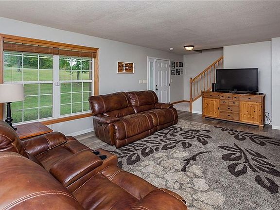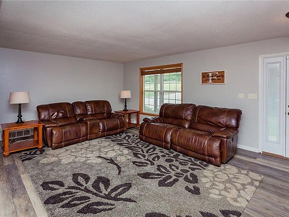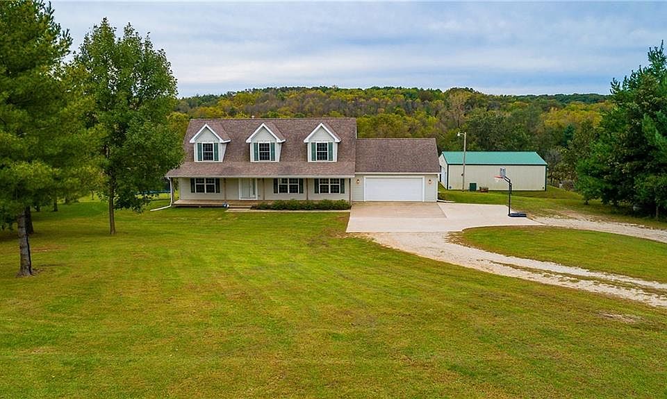 Gorgeous views on this acreage with timber, creek, and ATV trails. 4 bedroom and 3 bath 1 1/2 story home w/ master, second bedroom and additional full bath on first level and two very spacious bedrooms and third full bath on second story. Main level boasts a large living room, dining area and kitchen w/ island, walk-in pantry w/ shelving, new stainless steel appliances. Master suite has private bath w/soaking tub and dual vanities and walk-in closet. Daylight lower level stubbed for bath and has 9 foot ceilings. Other features: 30x40 heated/insulated outbuilding, newer roof, new luxury vinyl plank flooring throughout main level, new flooring and toilets in bathrooms on main level, new slider to deck, new floor on large deck, set up for generator, furnace humidifier, and much more! 9 acres enrolled into wetland CRP. This home is great for nature lovers!