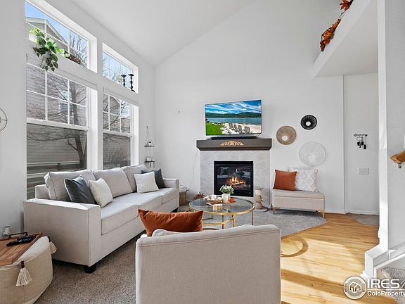 This townhome boasts a luminous and expansive floor plan as an end unit, hardwood floors grace the entry, kitchen, and dining areas. The main floor features the primary bedroom and has the flexibility to allow you to have an office or second bedroom on the main level, along with the option of utilizing a loft space upstairs as an office area, enhances the home's adaptability. Cozy up in the living room with the gas fireplace or enjoy the dining area and outdoor patio with miles of trails for you to explore.
