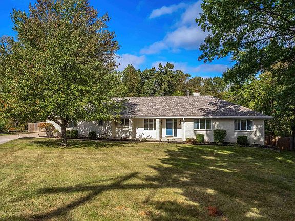 Beautifully updated ranch home on a cul-de-sac and .79 acre, tree-lined lot! Luxury vinyl plank flooring flows from the foyer throughout much of the main floor. The updated kitchen has newer white cabinetry with soft-close drawers, stainless steel appliances, pantries, quartz countertops and tile back splash. Main floor laundry has a built-in closet and a sink. The great room with a brick fireplace and stone hearth and the dining open to the large maintenance free deck and fresh landscaping along with a beautiful garden shed and garden. Primary suite has a slider to a private deck, an updated bath with a walk-in shower and several closets and dressing area. Much of the home has updated white paneled doors and nickel hardware and lighting. Walk-out basement with a large patio includes a wet bar, game room, rec room with fireplace, 2 bedrooms and a bath! Per assessor, Roof 2020, Siding 2020, Fence 2023.