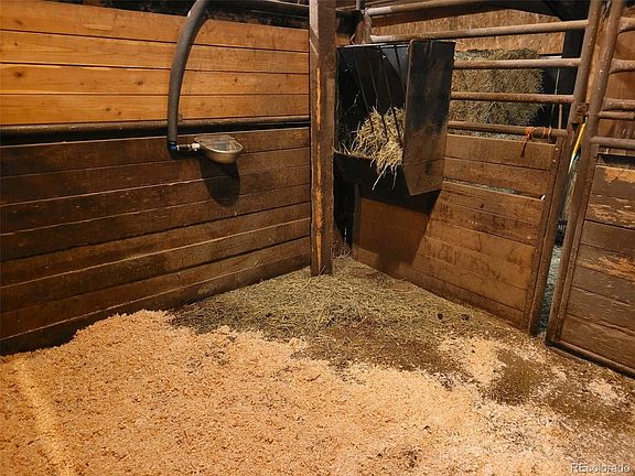 Country with convince! Beautiful Mountain Views...Located about a mile from I-25 and the Larkspur Shopping area. An outstanding Bi-Level home tucked away in a secluded subdivision. This nicely updated horse property is located on TWO lots with a total of 2.04 acres. The Bi-Level home has much to offer with it's 3 car garage and multiple outbuildings for horses, livestock, or workshop. No HOA! The main level has hardwood flooring and updated lighting. Focal points of the livingroom are the beautiful wood fireplace and the bay window with fantastic Mountain Views. An updated kitchen with tons of cabinets, Corian countertops, pantry, eating bar, and all appliances. The dining area opens out to the large upper level deck . The primary bedroom has been nicely remodeled and opened up, with hardwood floors, a sitting area, walk in closet, French doors, and two ceiling fans. The lower level family room is where the second wood burning fireplace is, with a wood stove insert. Three additional bedrooms are located on the lower level (one being used as an office), as well as the utility/laundry room (newer furnace and water heater). This level has access to the large mud room/ exercise room that exits both to the outside patio or to the attached 3 car garage. Outside is a great place for entertaining with a large covered & uncovered patio area and fenced backyard. In the back of the property, there is a large parking area. Perfect for parking your RV, boat, trailer, or other equipment. Be sure to check out the out buildings. A large 2-story hay barn/shop with new wiring, concrete floor and 220 elect. The horse barn has 4 stalls, heated tack room, lights and water. An additional lean-to provides shelter for the animals. The property is fenced and cross-fenced for horses. There is also a riding arena and small pasture. There are many trees on the property. Easy access to shopping and to I-25 and Highwy 7. This acreage property is close to town and with plenty of space!