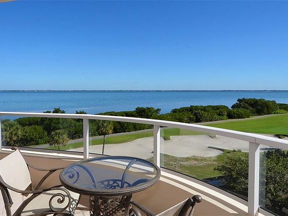 When it comes to living in a condominium it's all about the "VIEW". Have it all here, morning sunrises and enchanting sunsets. Even better enjoy the gorgeous wide-open Harbourside Golf and Sarasota Bay Views from your wrap-around terrace in this corner unit with morning sunrises and stunning sunsets. Being sold turnkey furnished, you can bring your bags and move right in. White, light and bright with two bedrooms and two bathrooms, you will enjoy private terrace access from every room. Features include ceramic tile floors, volume ceilings, directional art lighting, floor-to-ceiling windows and custom window treatments. The wall of sliding glass doors in the main living area showcase the amazing view of the Bay and beyond. This five-story building includes an under-building garage with "2-car assigned parking" and storage. The exclusive community features amenities; onsite management, an active social calendar, an elegant clubhouse, fitness center, swimming pools, a spa, Har-Tru tennis courts, gated entry and 24-hour security. As a Bay Isles owner, you have deeded beach access at The Beach Club. Nearby are a marina, golf, shopping, dining, St. Armand's and Downtown Sarasota.