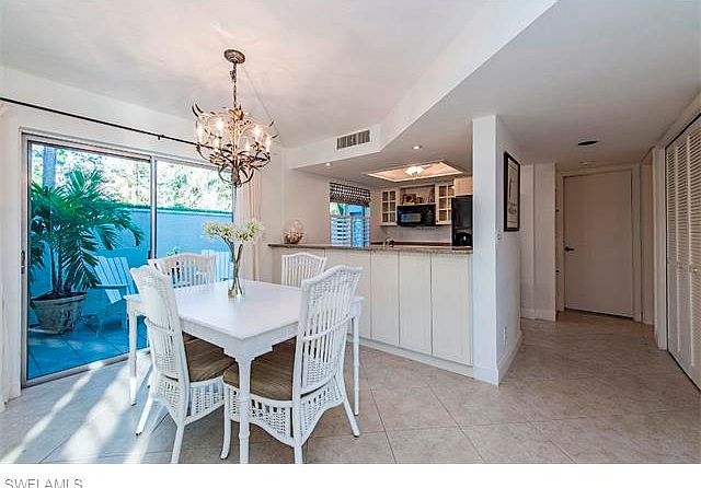 Vacation at home, only minutes to the beach! This glistening first-floor condominium offers a private front entry. Just down the street to Kings Lake Square shopping center, you will be close to Publix, Starbucks, restaurants, bank, nail salon and more. Remodeled kitchen with quartz countertops, beautiful cabinetry and tile floor. The kitchen, dining and living area are combined to make it perfect for entertaining. Plantation shutters throughout. Convenient hall laundry area with extra storage. The enclosed lanai has glass sliders for a mix of breezes or warm comfort from the afternoon sunshine. Enjoy lounging on your private patio while sipping a cool drink. The unit has a designated parking spot under carport and storage closet. Within Camelot you will love the crystal clear pool, sauna, bubbly spa with views of the lake and abundant wildlife. Other amenities include a path that surrounds Kings Lake. Tennis courts are located within the neighborhood. Meticulously cared-for and move-in ready. See for yourself!