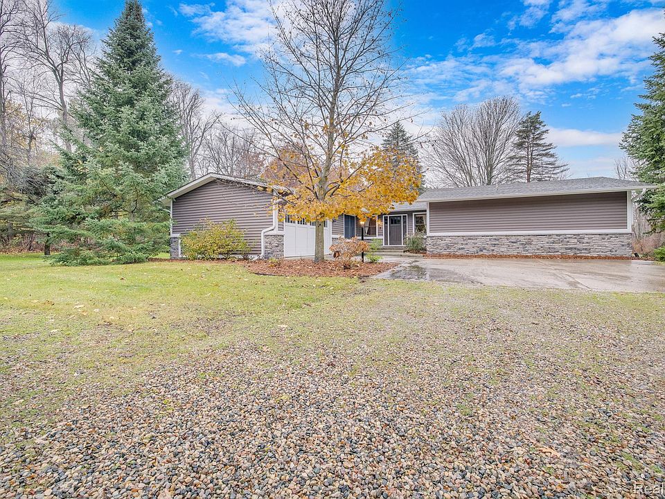 Enjoy the private country setting of this beautiful 3 bedroom, 2 full bath 2019 remodeled ranch home on 9.82 acres of mostly wooded land. This home features a complete exterior remodel consisting of stonework, wood siding, cement work, doors and windows, whole house generator and garage door. Interior updates include: Windows, Doors, Moldings. Hallway bath remodel. There's nothing left to be done except move in and enjoy your new home. Sitting on almost 10 acres, you'll enjoy all of the wildlife from all windows. Enjoy the partial finished walk-out basement featuring newly poured cement and new door. The back yard features a nice sized pond and metal pole barn for storage or even a man cave. Up-North living with convenient drives times - 30 Min to Fint Bishop Airport and Rochester. 40 Min to Port Huron and Troy.