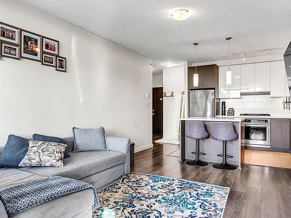 Spacious South facing 1 Bedroom plus Large Den (fits a queen bed +closet). Floor to ceiling window showcasing unobstructed panoramic view from every corner! Abundance of sunlight during the day & gorgeous city lights at night. Functional open layout designed with decent Modern kitchen/cabinetry, under mount lights, Quarts Island & counter tops, Kitchen Aid S/S appliances & Gas top Stove. Radiant heat flooring in Kitchen/Bathroom. Large Terrace with Stunning City & Mountain views! Away from City hustles but walking distance to Coquitlam Skytrain station, Lafarge Lake, Parks, Shopping Mall, Restaurants/cousins, Douglass College & Schools. Building Amenities offer Outdoor Pool, Hot Tub, Sauna, BBQ Area, Lounge, Theatre, Yoga Studio & Guest Suite. 1 Parking, 1 Locker included.
