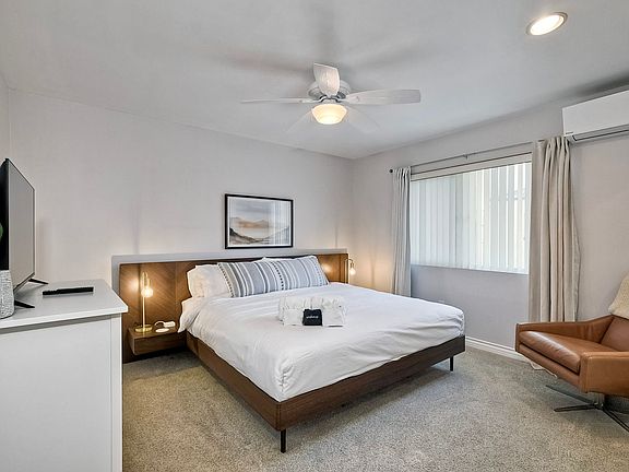 Escape to Coastal Casita, your ultimate beachside getaway just steps from the ocean and located in the heart of vibrant Carlsbad Village. This recently upgraded condo offers convenience, comfort, and a touch of luxury, making it the perfect spot for your next vacation. Situated just one block from the beach and within walking distance to restaurants, shops, and more, this casita ensures you feel at home. Step into the open and airy living room, featuring vaulted ceilings and a cozy atmosphere. The kitchen is fully equipped for preparing meals, while the living area offers space to relax after a day of adventure. Family-friendly amenities include a pull-out couch in the living room, a pack-n-play, kids' dishes, and a kids' seat for a stress-free stay. Modern comforts include a new Beautyrest king-size mattress, a mini-split AC system in both the living room and bedroom, and a new shower head set to a comfortable water pressure. Beach gear such as chairs, beach towels, an umbrella, boogie boards, and sand toys ensure endless fun by the sea. One reserved covered parking spot is available on the property, and additional free street parking is available if needed. Located just one block from the beach, this casita is within walking distance to dining and shopping options. Nearby attractions include Legoland at 5 miles, Oceanside Pier at 4 miles, Del Mar Fairgrounds at 15 miles, San Diego Safari Park at 29 miles, SeaWorld at 31 miles, San Diego Zoo at 36 miles, and San Diego Airport at 36 miles. Contactless check-in is available with a secure digital lock and a personalized code. The casita is on the second floor and requires the use of stairs, as there is no elevator access. Due to the owner's pet allergies, no pets are allowed. Smoking or vaping is not permitted in the unit or on the property. Quiet hours are from 10 PM to 10 AM daily, and no parties are allowed. Complimentary high-speed Wi-Fi with speeds averaging 300 Mbps is available for work or streaming.