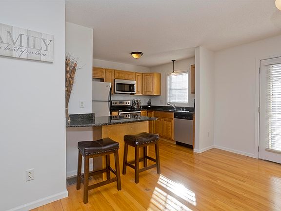 Welcome home to this beautiful condo that offers a bright modern day floor plan situated on an end unit. In this town house style unit, inside you will find hardwood flooring with a complete kitchen featuring granite countertops, hardwood cabinets, a peninsula, ss appliances and a separate breakfast/dining area. The living room is quite spacious with newer carpet and a private balcony for some fresh outdoor air. On the first floor you will find an updated bath with tile flooring and granite countertop. The second level of living features two bedrooms and an oversized primary bedroom with a large walk in closet. This unit has ample parking and a private one car garage with opener and separate entrance into the unit . The laundry hook ups are in the basement and has plenty storage space. This unit is a must see, and move in ready!